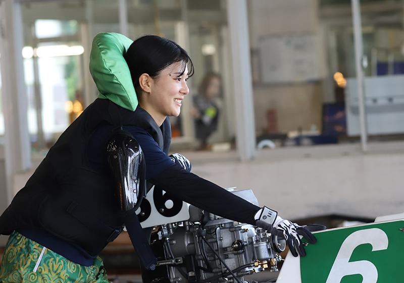 ウィンドサーフィンで全国大会出場歴(中学時代)のある競技者の座右の銘は「One Time Life(人生一度きり)」。養成所リーグ戦第1戦で優出4着としている。(養成所勝率は5.56)